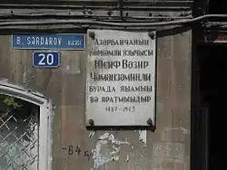 - ↑ Orkhan Vazirov, About My Father Yusif Vazir Chamanzaminli (Bakou: Nargiz, 2007), p. 51. En azéri.