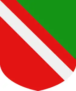 Les armes des Zancarolo sont tranché de sinople sur gueules, à la bande tranchée de gueules sur argent, brochant sur le tranché.