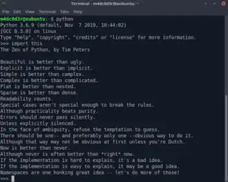 Le "Zen of Python" (en anglais) vu dans un terminal