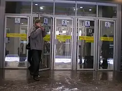 Vue du bâtiment commercial qui abrite le hall et l'accès à la station. | ||||||||