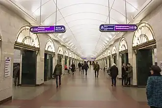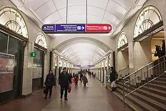 Elle est en correspondance directe, par un couloir avec deux sens de circulation piétonne équipé d'escaliers fixe pour quitter le quai au centre de la station et arriver sur le centre du quai de la station Pouchkinskaïa, desservie par la ligne 1 du métro de Saint-Pétersbourg[2].