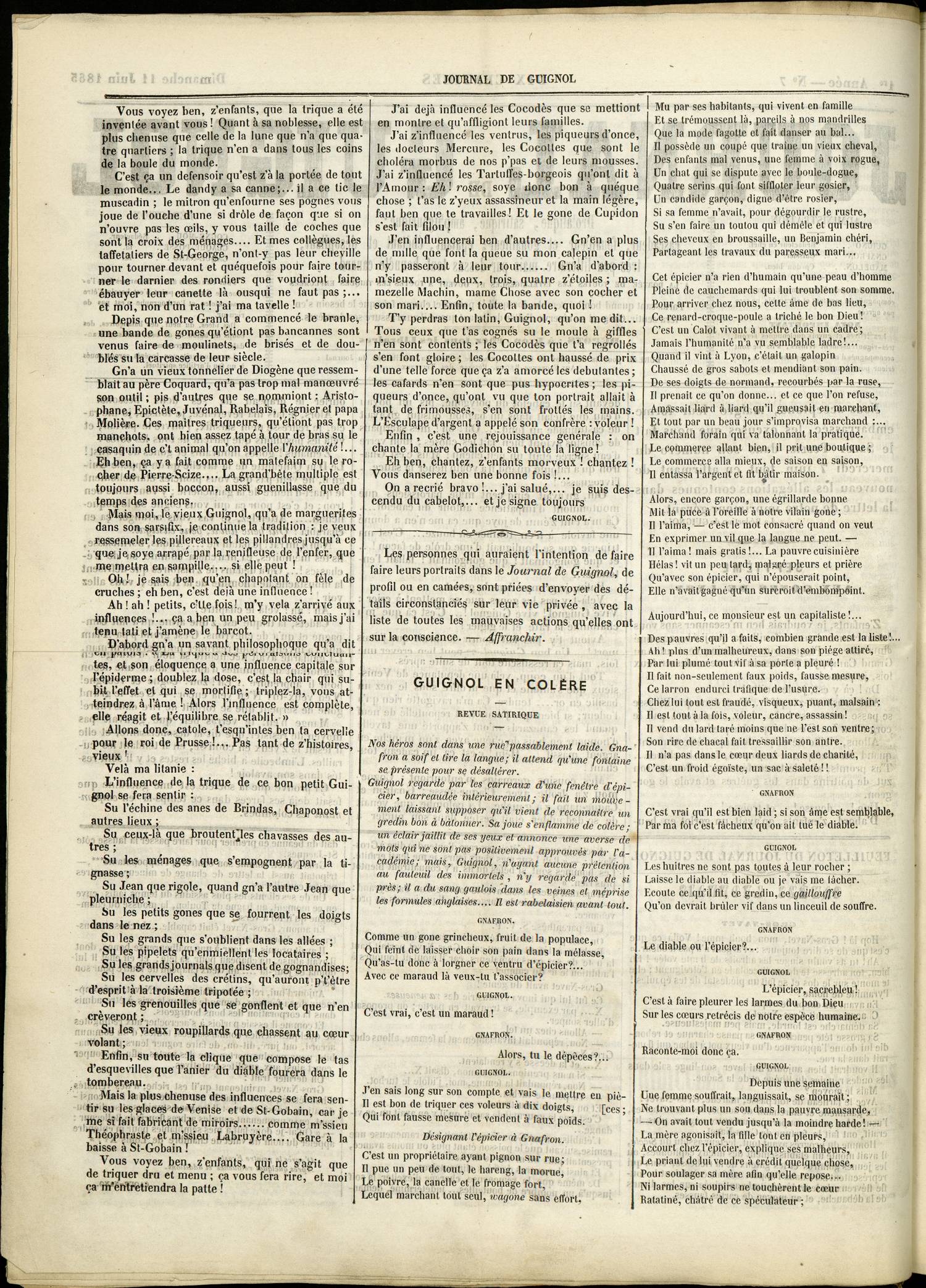 — (Guignol, Aux gpnes de Lyon, Le journal de Guignol, 14 juin 1865, page 2)